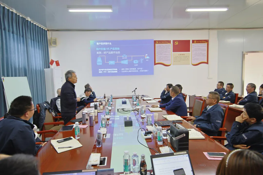 當(dāng)日下午,印建安組長(zhǎng)以《看見未來,才有未來——“服務(wù)型制造”是中國(guó)制造業(yè)產(chǎn)業(yè)升級(jí)的戰(zhàn)略選擇》為題,為大禹電氣全體管理團(tuán)隊(duì)帶來一場(chǎng)精彩紛呈的講座。印組長(zhǎng)指出,自2015年起,全球制造業(yè)都在探尋突圍路徑,德國(guó)、日本、美國(guó)等傳統(tǒng)工業(yè)強(qiáng)國(guó)紛紛進(jìn)行制造業(yè)轉(zhuǎn)型探索,中國(guó)也在這一進(jìn)程中提出了契合自身發(fā)展的計(jì)劃。印組長(zhǎng)以“授人以魚還是授人以漁”為論述主線,結(jié)合以前主導(dǎo)企業(yè)成功轉(zhuǎn)型的經(jīng)歷,與大家深入探討中國(guó)制造業(yè)的產(chǎn)業(yè)升級(jí)路徑。印組長(zhǎng)強(qiáng)調(diào),服務(wù)型制造的本質(zhì),是基于市場(chǎng)導(dǎo)向?qū)ζ髽I(yè)經(jīng)營(yíng)價(jià)值鏈的重構(gòu)。