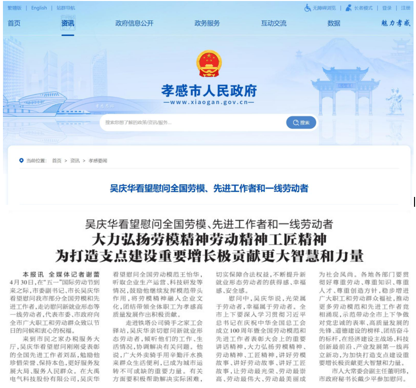 孝感市市長(zhǎng)吳慶華看望慰問(wèn)全國(guó)勞模王怡華和大禹公司一線職工